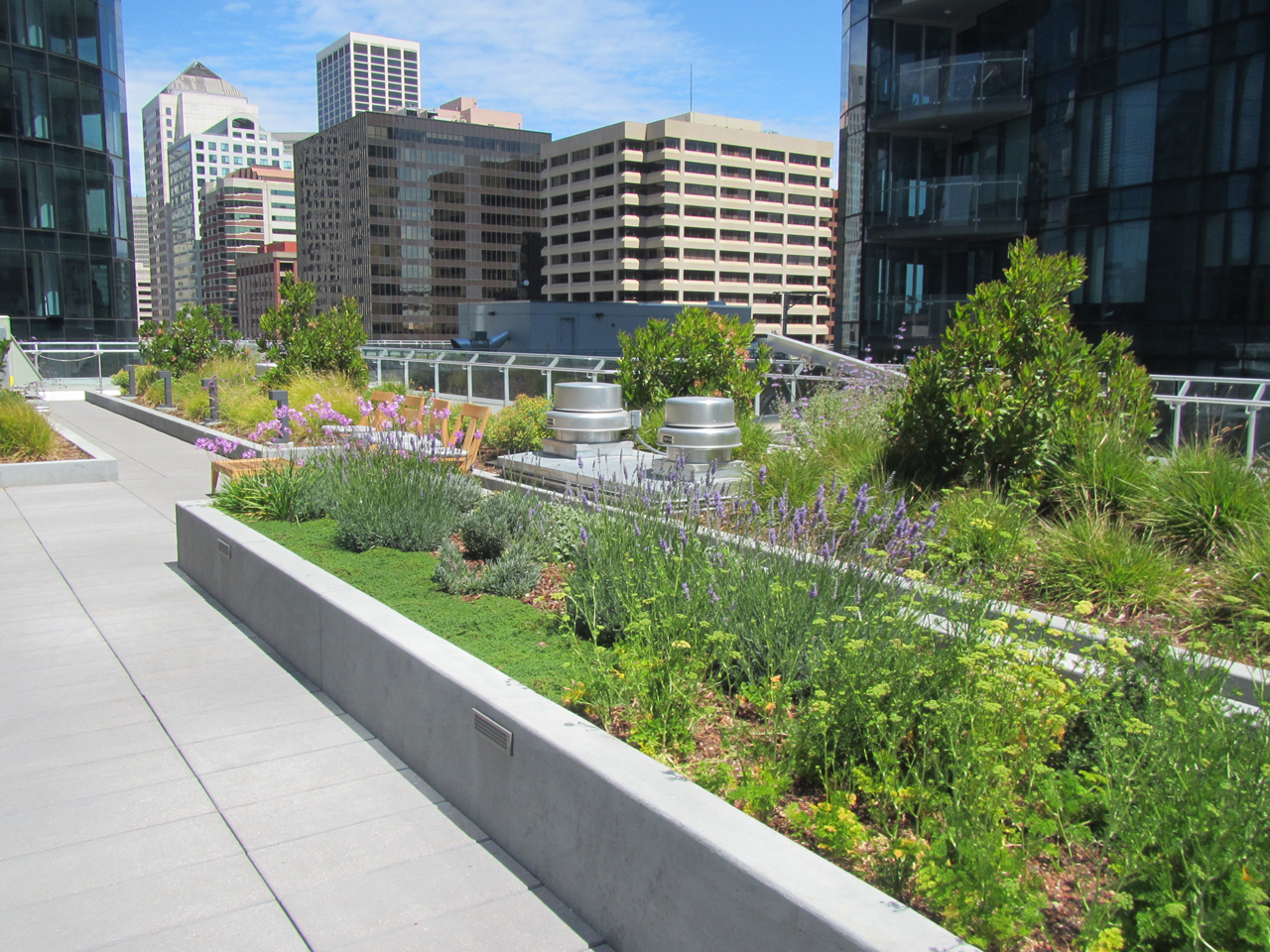 When used in conjunction with Hydrotech's full line of hardscape elements, such as architecturally finished pavers and precast items, the system is ideal for roofs and plazas that will serve as pedestrian recreational areas.