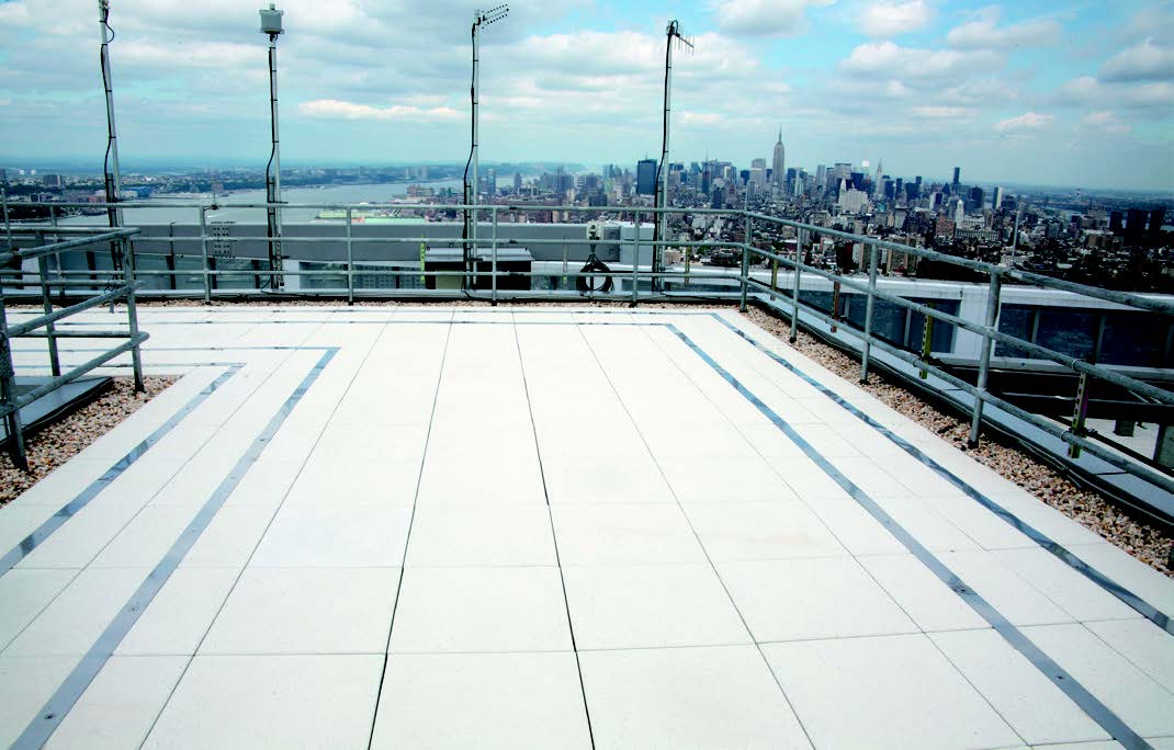 Hydrotech’s PMR Assembly…with high reflective concrete pavers: (with Hanover Glacier White Concrete Paver available through Hydrotech)